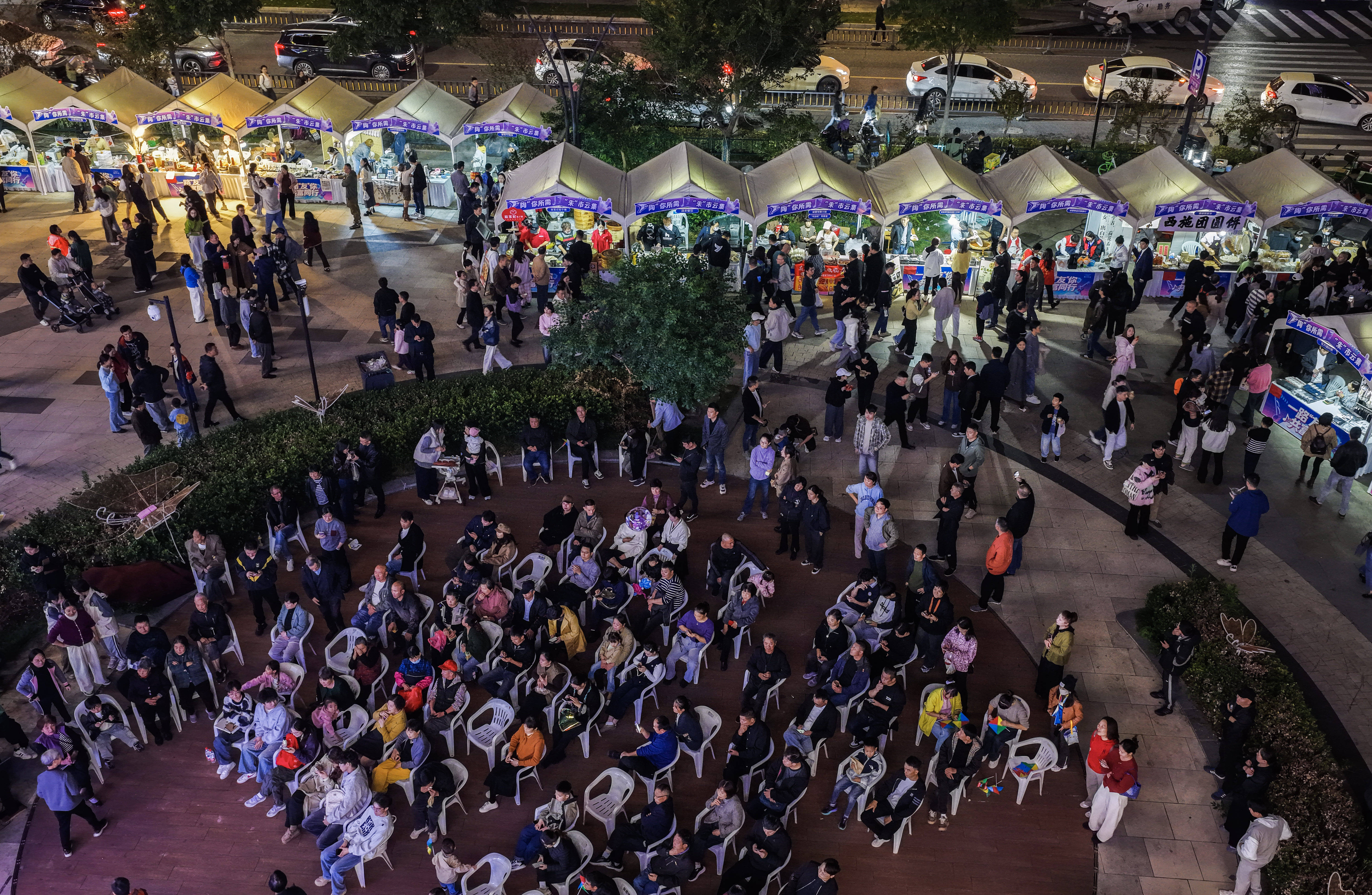 (11月7日,浙江省诸暨市陶朱街道办事处在西施篮球中心外围打造“陶你所需·朱市云集”社区共富市集吸引了大批市民游客。无人机拍摄,新华社发)场景无界融合:“从点到面”激活消费新潜能